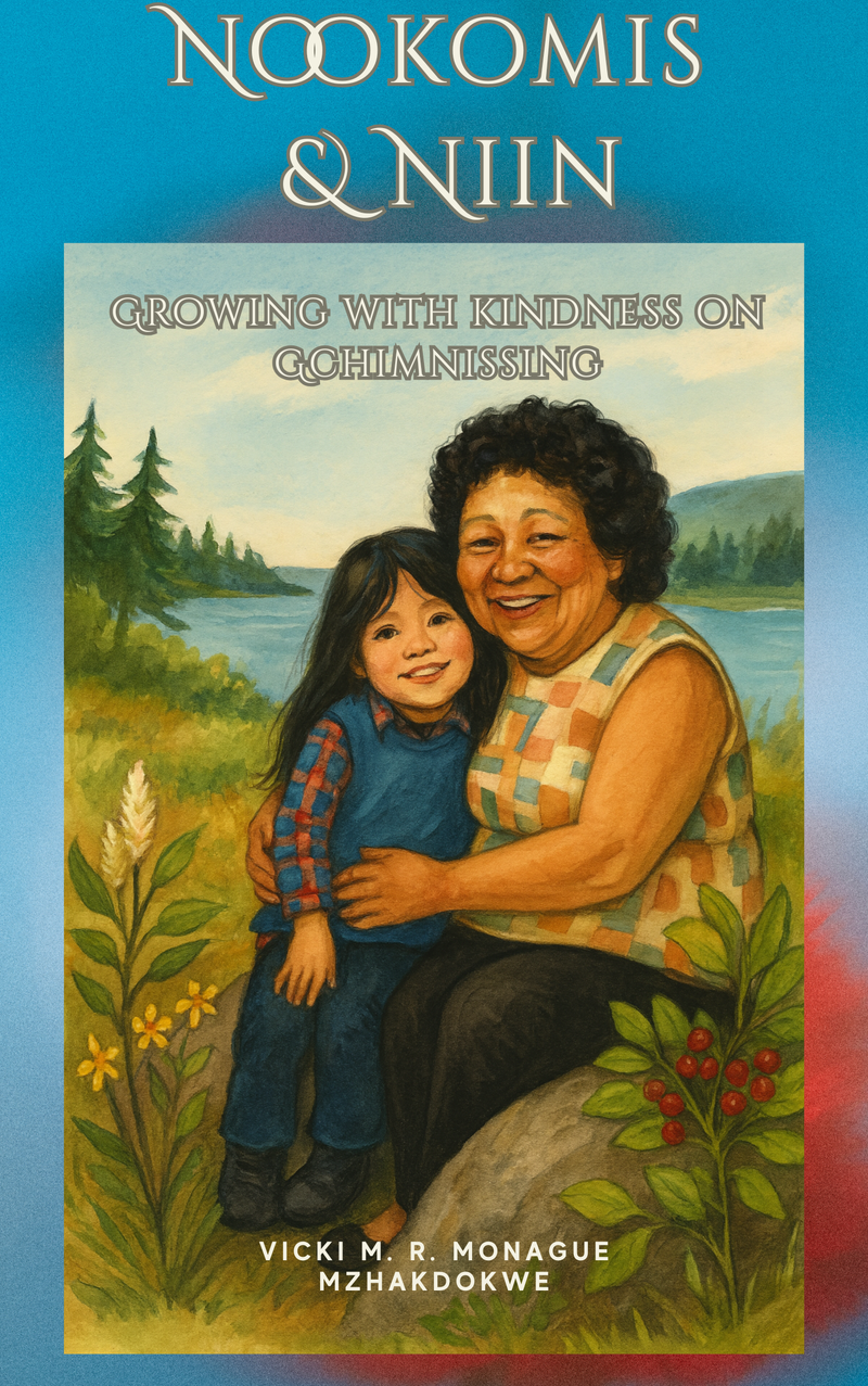 Nookomis & Niin: Growing with Kindness on Gchimnissing is a bilingual, land-based children’s story rooted in Anishinaabe family life, language, and everyday teachings. Through forest walks, gathering berries and sweetgrass, and time spent with Nookomis, the story affirms care, respect, and responsibility to land and one another.